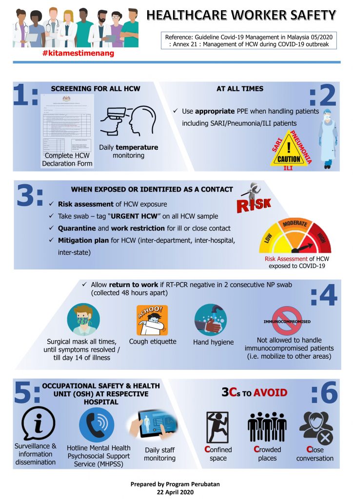 Healthcare Worker Safety Advice & Nasihat Putuskan Rangkaian COVID- 19 Ditempat Kerja 23/04/202023/04/2020 hospital Pontianhospital Pontian 0 Comments 7:26 am Categories: Wargakerja Post navigation SEBELUMNYA Previous post: Langkah kesiapsiaga Novel CoronavirusSETERUSNYA Next post: Hypertensive Crisis Artikel Berkaitan Aktiviti AEMAS Energy Sustainability Program Hospital PontianAktiviti AEMAS Energy Sustainability Program Hospital Pontian Antara aktiviti-aktiviti Sustainability Program di Hospital pontian Baca PenuhBaca Penuh Hypertensive CrisisHypertensive Crisis Baca PenuhBaca Penuh Langkah kesiapsiaga Novel CoronavirusLangkah kesiapsiaga Novel Coronavirus Novel Coronavirus di China dilaporkan telah merebak ke Beijing & Shenzhen dengan 2 dan 1 kes masing-masing. Sebanyak 139 kes baru dicatatkan pada sabtu dan ahad sahaja di China. Kebanyakan Baca PenuhBaca Penuh