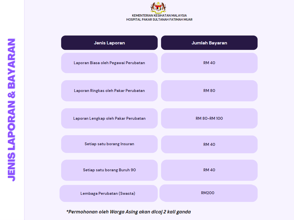 - Borang Permohonan Laporan Perubatan/Laporan Bedah Siasat