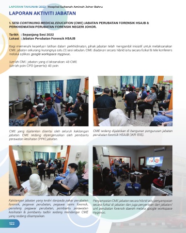 Kakitangan jabatan yang terdiri daripada pakar perubatan Penyampaian CME jabatan secara hibrid iaitu penyampaian