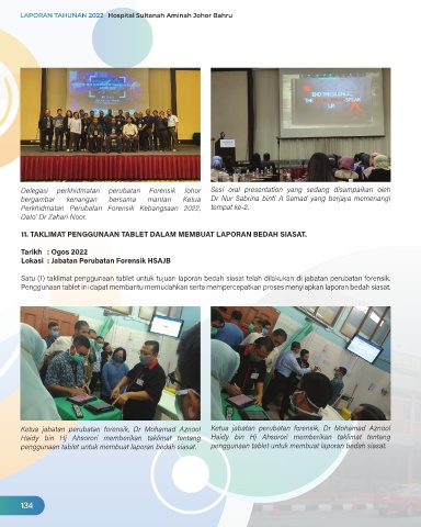 Satu (1) taklimat penggunaan tablet untuk tujuan laporan bedah siasat telah dilakukan di jabatan perubatan forensik.