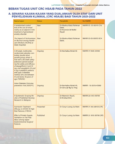 Page 157 - LAPORAN TAHUNAN HOSPITAL SULTANAH AMINAH 2022