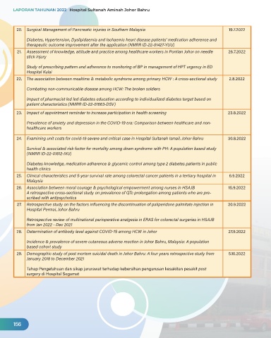 Page 160 - LAPORAN TAHUNAN HOSPITAL SULTANAH AMINAH 2022