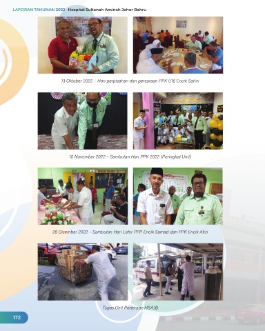 13 Oktober 2022 – Hari perpisahan dan persaraan PPK U16 Encik Sahiri 10 November 2022 – Sambutan Hari PPK 2022 (Peringkat Unit) 28 Disember 2022 – Sambutan Hari Lahir PPP Encik Samad dan PPK Encik Afizi Tugas Unit Porterage HSAJB 172