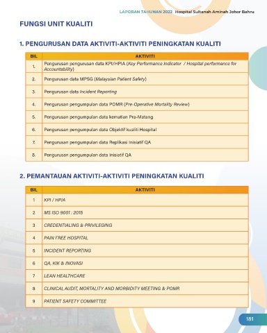 Page 185 - LAPORAN TAHUNAN HOSPITAL SULTANAH AMINAH 2022