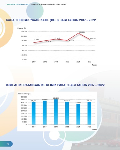 KADAR PENGGUNAAN KATIL (BOR) BAGI TAHUN 2017 – 2022 JUMLAH KEDATANGAN KE KLINIK PAKAR BAGI TAHUN 2017 – 2022 16