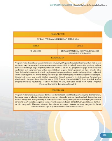 Page 287 - LAPORAN TAHUNAN HOSPITAL SULTANAH AMINAH 2022