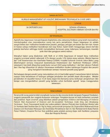 Page 291 - LAPORAN TAHUNAN HOSPITAL SULTANAH AMINAH 2022