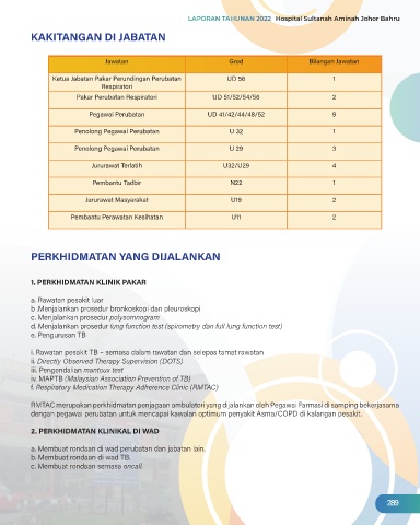 Page 293 - LAPORAN TAHUNAN HOSPITAL SULTANAH AMINAH 2022