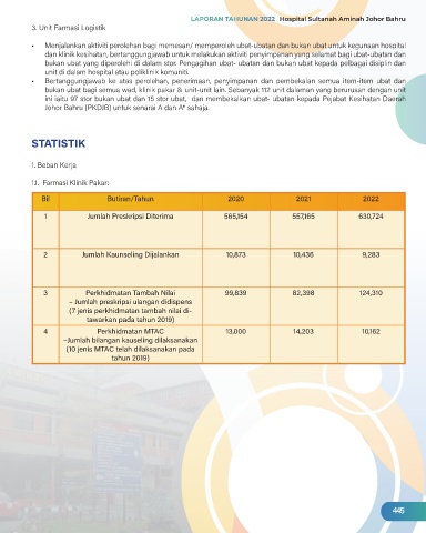 Page 449 - LAPORAN TAHUNAN HOSPITAL SULTANAH AMINAH 2022