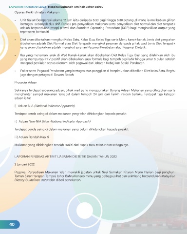 LAPORAN RINGKAS AKTIVITI JABATAN DIETETIK SAJIAN TAHUN 2022