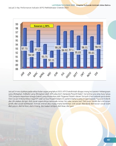 Jadual 3 menunjukkan pada setiap bulan sepanjang tahun 2022, KPI Dietetik telah dicapai mengikut sasaran kebangsaan