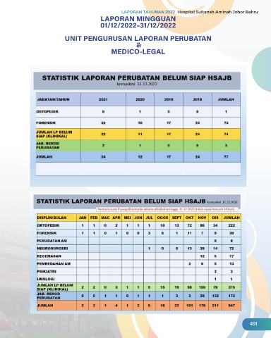 LAPORAN MINGGUAN 01/12/2022–31/12/2022 UNIT PENGURUSAN LAPORAN PERUBATAN & MEDICO-LEGAL 491