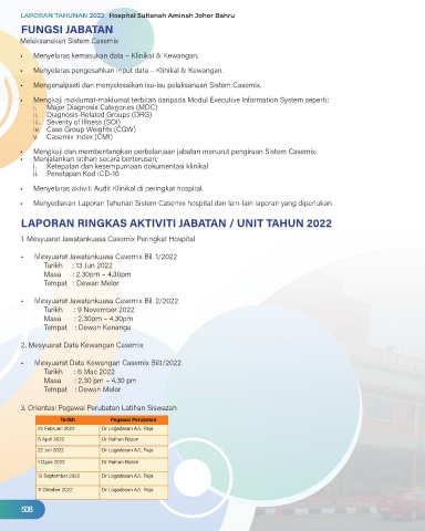 • Menyediakan Laporan Tahunan Sistem Casemix hospital dan lain-lain laporan yang diperlukan.