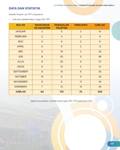 Jadual menunjukkan statistik beban tugas OSC FPP pada tahun 2022.