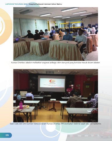 Kursus Orientasi Jabatan melibatkan pegawai pelbagai skim dan gred yang bertukar masuk dalam Jabatan Salah satu slot Unit Sumber Manusia dalam Kursus Orientasi PPS berkaitan Taklimat salah laku dan tatatertib. 578