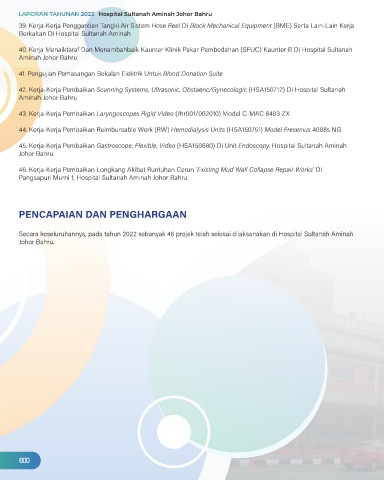 Secara keseluruhannya, pada tahun 2022 sebanyak 46 projek telah selesai dilaksanakan di Hospital Sultanah Aminah