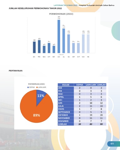 JUMLAH KESELURUHAN PERMOHONAN TAHUN 2022 JAN FEB MAC APR MEI JUN JUL OG SEP OKT NOV DIS PERTANYAAN 611