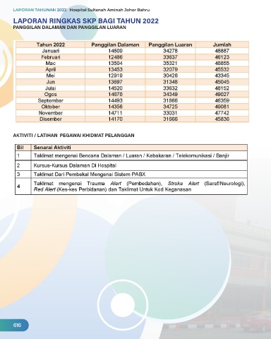 LAPORAN RINGKAS SKP BAGI TAHUN 2022 PANGGILAN DALAMAN DAN PANGGILAN LUARAN AKTIVITI / LATIHAN PEGAWAI KHIDMAT PELANGGAN 616