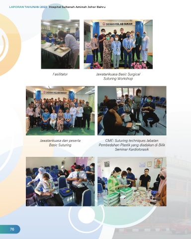 Fasilitator Jawatankuasa Basic Surgical Suturing Workshop Jawatankuasa dan peserta CME: Suturing techniques Jabatan Basic Suturing Pembedahan Plastik yang diadakan di Bilik Seminar Kardiotorasik 76