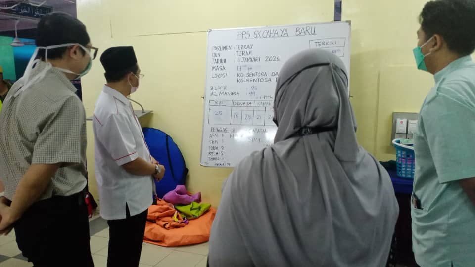Saringan kesihatan, semburan lysol, pemeriksaan persekitaran dan aktiviti pendidikan kesihatan turut diberikan kepada mangsa banjir. Pengarah Kesihatan Negeri Johor, Dr. Hj. Mohtar bin Pungut @ Hj. Ahmad telah mengadakan lawatan pada 10 Januari 2024 ke PPS SK Cahaya Baru, Pasir Gudang untuk meninjau keadaan mangsa banjir dan anggota kesihatan yang bertugas di PPS tersebut.