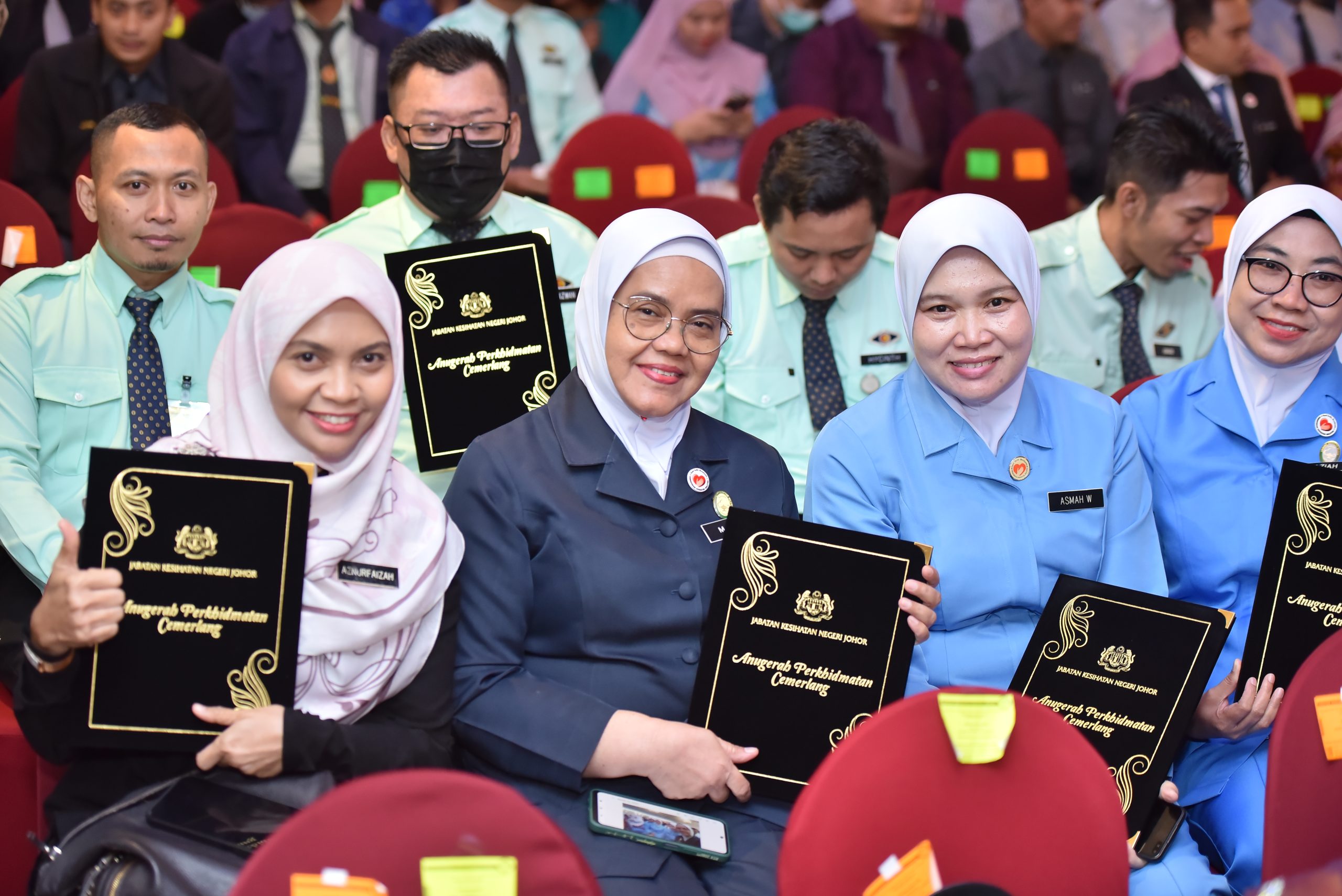 Majlis Anugerah Perkhidmatan Cemerlang Jabatan Kesihatan Negeri Johor telah diadakan pada 16 Mac 2023 bertempat di Dewan Kenchanapuri Pulai Spring Resort. YBhg Dato’ Zamzuri Bin Abdul Aziz, Timbalan Ketua Setiausaha (Kewangan) telah menyampaikan Sijil Anugerah Perkhidmatan Cemerlang kepada semua penerima sesi pagi iaitu seramai 959 orang manakala YB Tuan Ling Tian Soon, Pengerusi Jawatankuasa Kesihatan dan Perpaduan Negeri Johor telah menyampaikan menyampaikan Sijil Anugerah Perkhidmatan Cemerlang kepada semua penerima sesi petang iaitu seramai 940 orang.